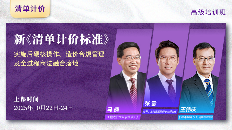 2025/10/22-24(3天课程)新《清单计价标准》实施后硬核操作、造价合规管理及全过程商法融合落地
