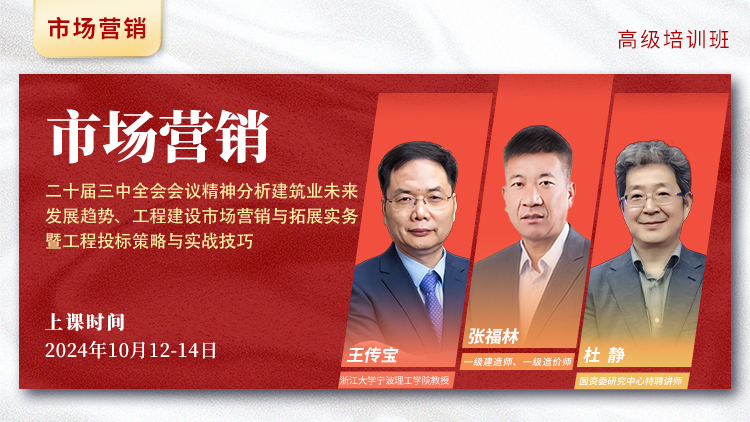 2024/10/12-14(3天课程)二十届三中全会会议精神分析建筑业未来发展趋势、工程建设市场营销与拓展实务暨工程投标策略与实战技巧