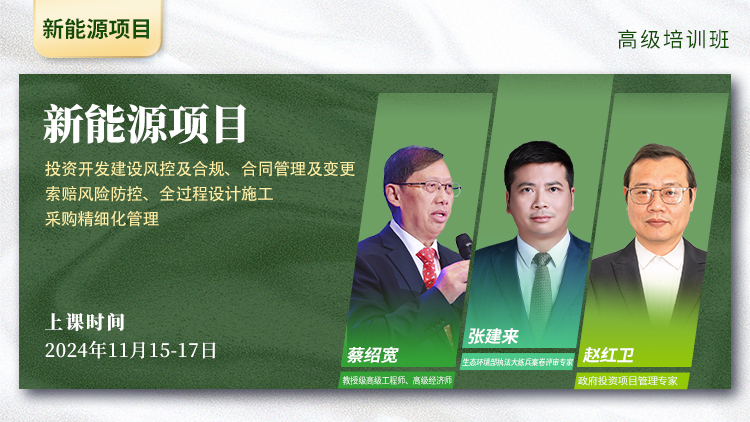 2024/11/15-17(3天课程)新能源项目投资开发建设风控及合规、合同管理及变更索赔风险防控、全过程设计施工采购精细化管理