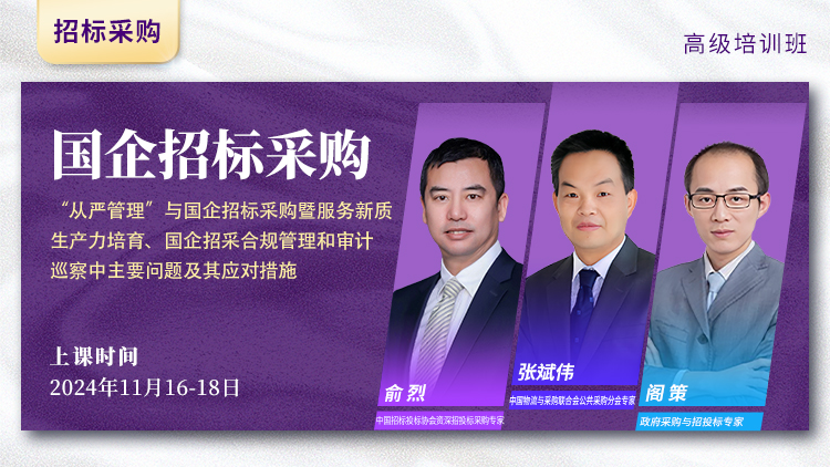 2024/11/16-18(3天课程)从严管理与国企招标采购暨服务新质生产力培育、国企招采合规管理和审计巡察中主要问题及其应对措施