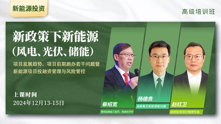2024/12/23-25(3天课程)新政策下新能源(风电、光伏、储能)项目发展趋势、项目前期跑办若干问题暨新能源项目投融资管理与风险管控